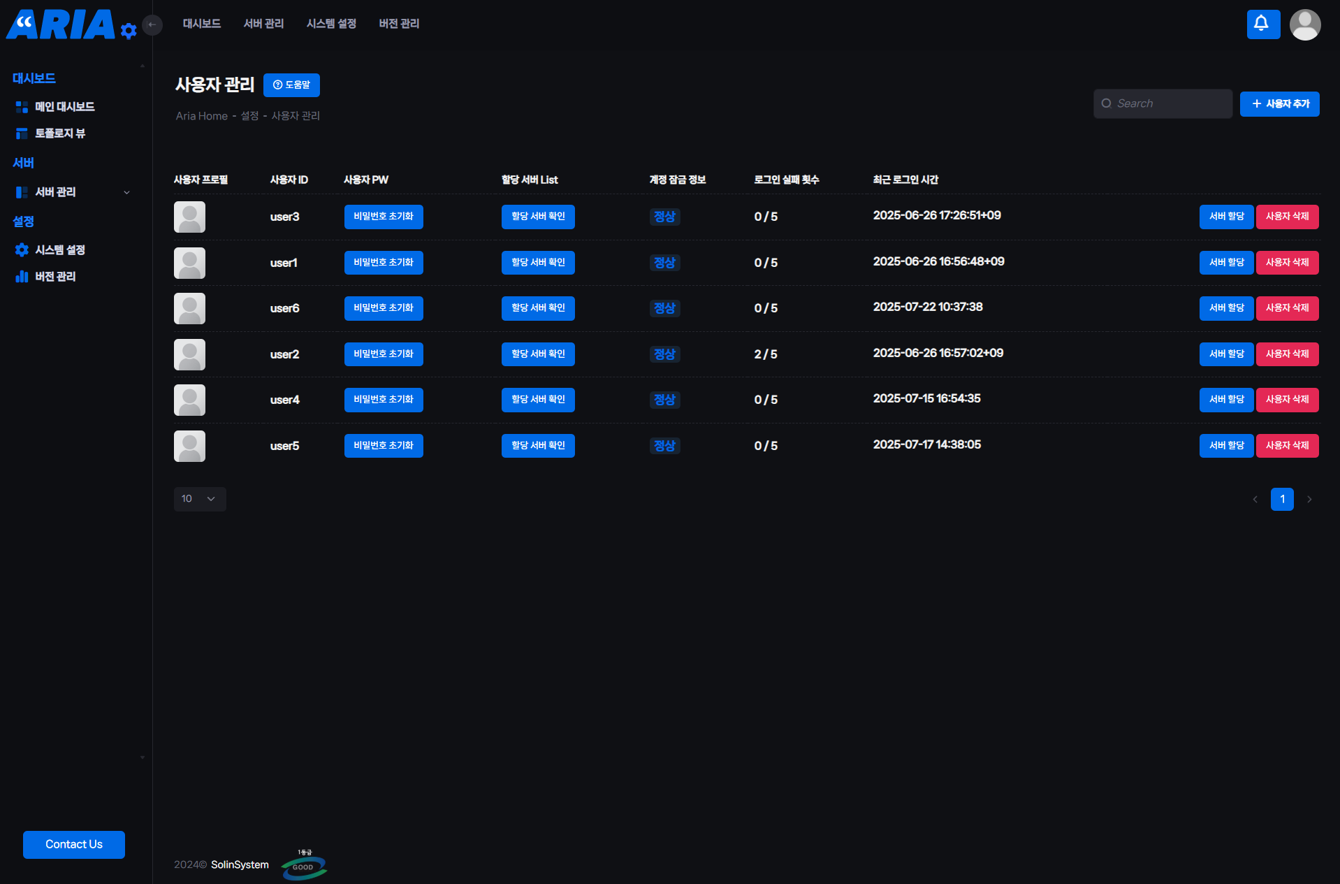 역할 기반 권한 관리: 관리자, 서버 담당자 등 역할에 따른 접근 권한 설정 및 접속 이력 기록 기능을 통해 시스템 통제력을 높입니다.